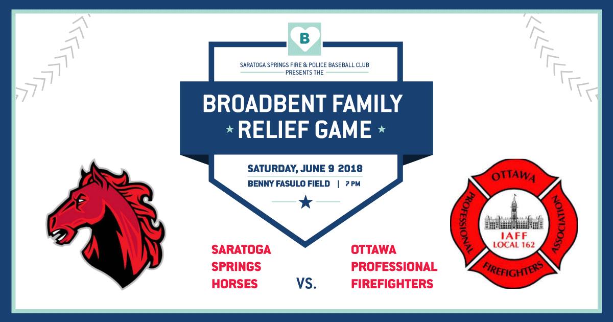 The Saratoga Springs Fire & Police Baseball Club is sponsoring a fundraising baseball game to benefit the Broadbents of Ballston Lake, who suffered a devastating house fire a couple weeks ago. Please come out to East Side Rec to show your support! RSVP.