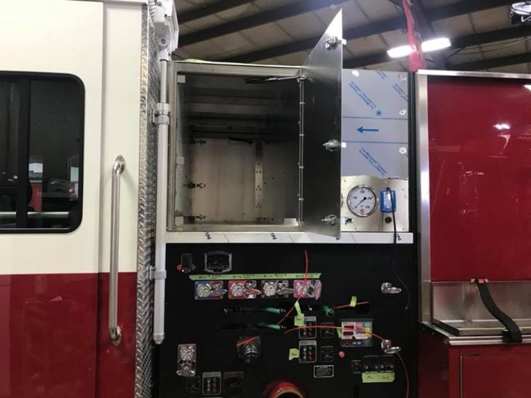 ETA 543 is a 2018 Sutphen Monarch engine tanker. It has seating for six firefighters, a 2,000 gallon per minute pump and a 1,000-gallon tank. It is used for fire attack and carries a full ladder truck compliment of ground ladders.